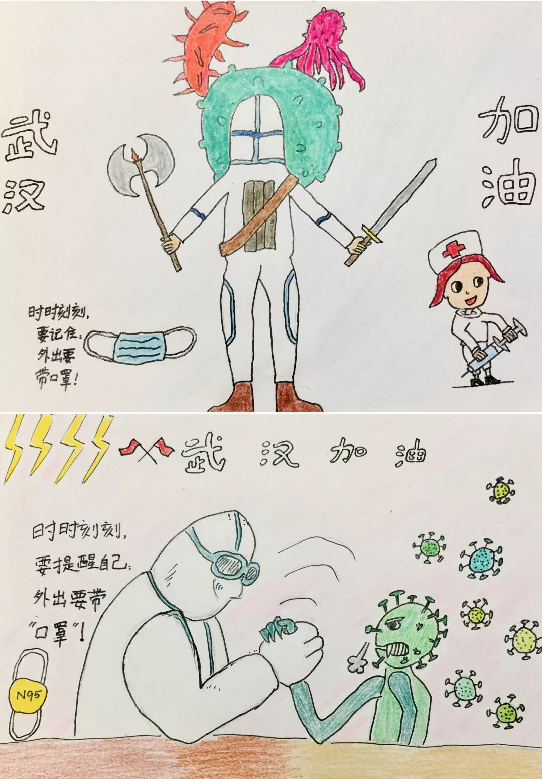 书画有情,稚手同心为“白衣战士”打call