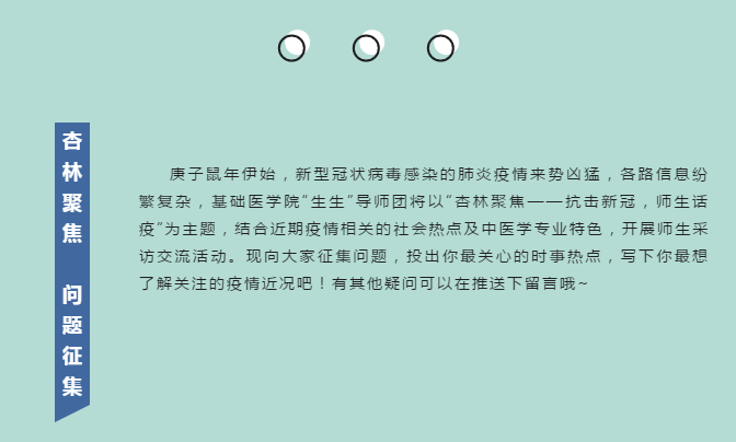 基础医学院“生生”导师团以“杏林聚焦——抗击新冠,师生话疫”为主题,聚焦疫情相关的社会热点及中医学专业特色内容,开展师生采访交流活动,为学生解答他们最关心的时事热点问题和困惑。