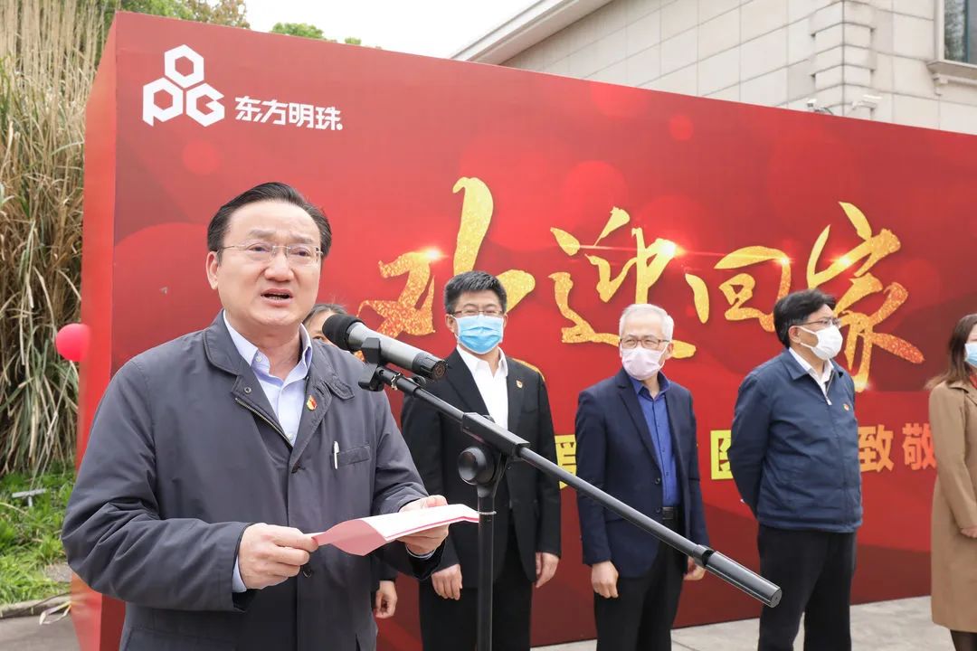 上海市卫健委副主任、市中医药管理局副局长张怀琼向队员代表赠送“市政府致浦江优秀儿女的一封家书”,并代表市卫健委和中医药管理局向队员们表示最热烈的欢迎、最崇高的敬意和最亲切的慰问。队员们不负重托,不辱使命,圆满完成了国家卫健委、国家中医药管理局和上海市委市政府交给的光荣而神圣的任务,冲锋在前,无私奉献,谱写了白衣天使的壮丽凯歌。他们中有剪发鸣志的,有夫妻一同参战的,有去完公卫中心再赴武汉的,也有的火线入党,种种的毅然姿态是我们上海的白衣战士敢于奉献、勇于拼搏精神的体现,也是上海精神的充分体现。当前上海又转入防输入、防反弹的艰巨阶段,希望医护人员们继续发挥在武汉的精神,投入下一阶段的救治工作,为各家医院恢复正常医疗秩序作出贡献,再立新功。