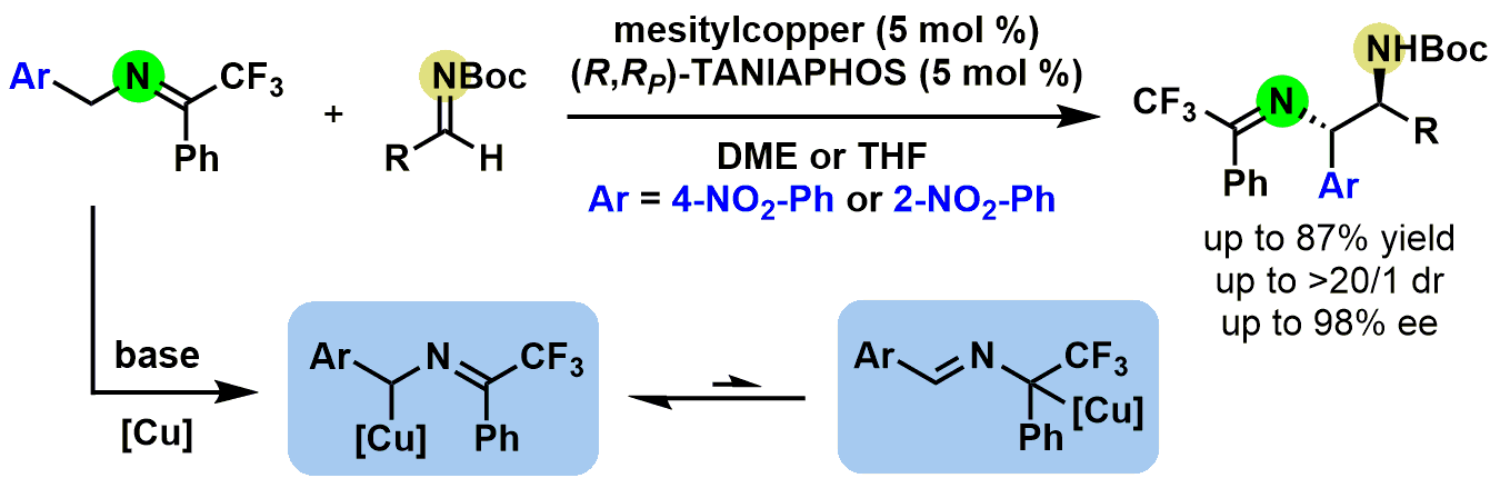 近日,beat365创新中药研究院林国强院士团队在《自然通讯》(Nature Communications)上发表研究论文Synthesis of chiral anti-1,2-diamine derivatives through copper(I)- catalyzed asymmetric α-addition of ketimines to aldimines,采用铜催化的亚胺的不对称分子间交叉偶联反应,高效且立体专一性地构建了天然产物中常见的手性二胺骨架。