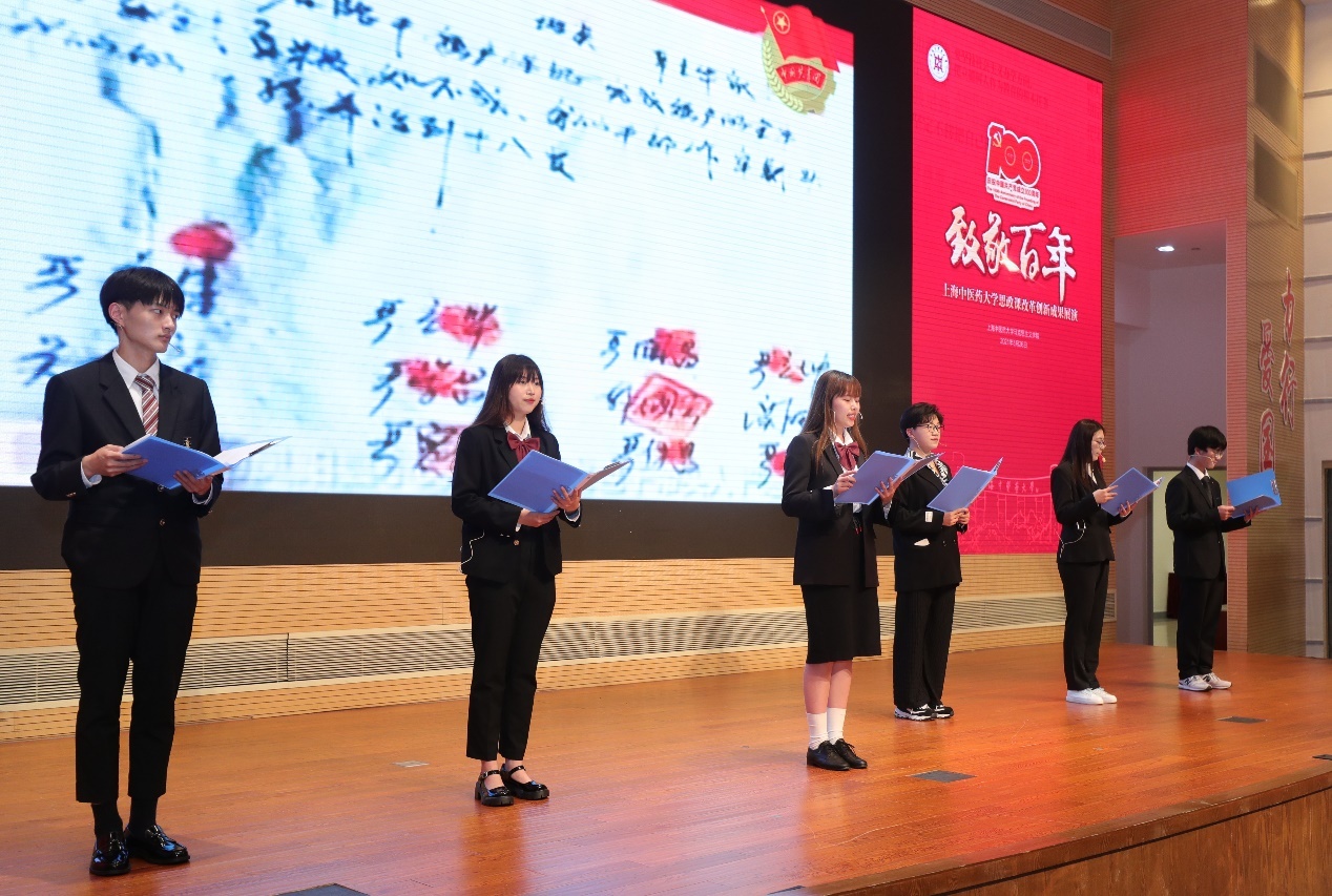 大学生们现场诵读习近平总书记的《在纪念马克思诞辰二百周年大会上的讲话》、《在纪念毛泽东同志诞辰一百二十周年座谈会上的讲话》、《在庆祝改革开放四十周年大会上的讲话》、《心有所信,方能行远》、《始终做到初心如磐、使命在肩》等重要论述,师生们共同追忆党的百年奋斗历程、体悟伟大成就、学习伟大精神,从红色经典中汲取营养、感受力量、坚定理想信念。