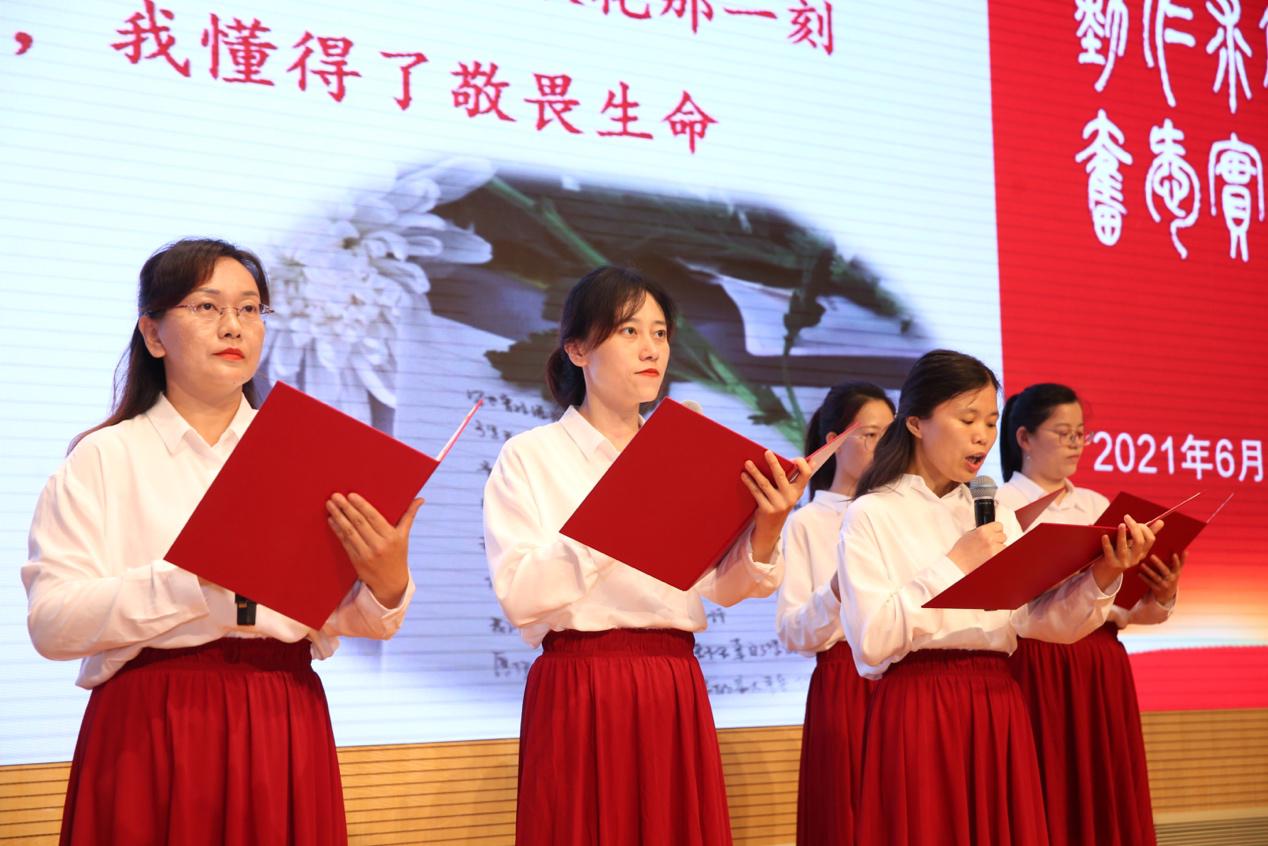 来自各条线的青年教师们结合党史学习教育体会共提交20个演讲作品,大会遴选了9个优秀作品,围绕“薪火相传心向党”“青春筑梦新时代”“启智润心担使命”“铸魂育人守初心”四个篇章,向300多名师生代表进行现场展示。
