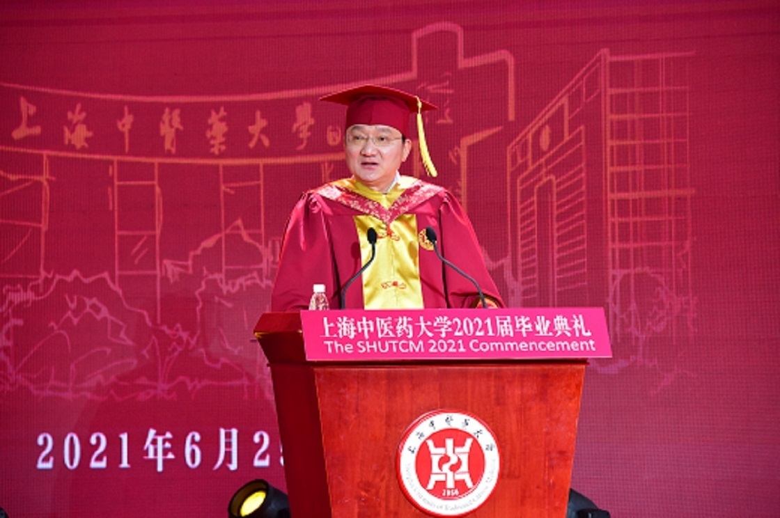 让青春的绚烂绽放在喜迎建党百年的重要时刻,6月25日,beat365官方网站举办“明理增信,崇德力行”2021届毕业典礼。校党委副书记、校长徐建光用充满中医情怀的“最后一课”,与1774名本专科生、研究生话别,希望同学们不忘本来、吸收外来、走向未来,用中医药智慧为中华民族乃至全人类健康作出贡献。