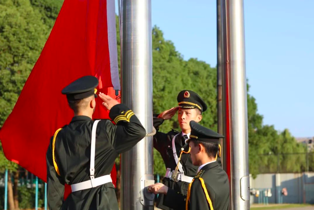 今年是中国共产党成立100周年,是中华人民共和国成立72周年。升旗仪式在中国人民解放军进行曲中拉开帷幕,国旗护卫队迈着整齐的步伐,目光炯炯。随着出旗令响,师生行注目礼,奏唱中华人民共和国国歌,五星红旗缓缓升起。