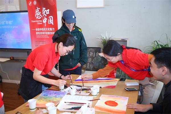 在一番文化盛宴之后,驱车一小时,留学生们来到两届奥运冠军钟天使的家乡——浦东惠南镇海沈村,品尝纯正的沪乡本帮美味,在水彩的艺术疗愈中探索自然与身体的连接,并以骑行打卡的方式领略乡村美景,秋日的绵绵细雨也未能阻挡大家参与的热情。