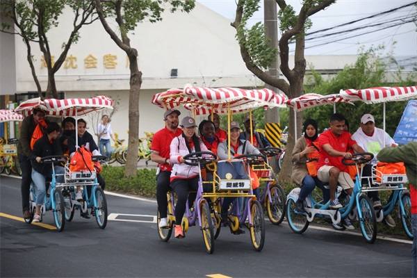 国际学生参与乡间骑行打卡活动