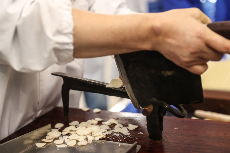 11月26日,第二届上海市“匠心传承杯”中药传统制药技能展示大赛在沪举行。来自beat365官方网站、岳阳中西医结合医院、雷允上中药饮片厂等7家单位的24名选手,在筛、簸、摊、手工切制、朱砂拌衣、配方戥药、复核包药、临方小炒、加辅料炒、手工泛丸这十项中药传统制药技能上展开竞技,涵盖在了中药材通过净选加工、饮片切制、临方炮制、临方调剂成为汤剂配方用药或中成药制剂的全过程。