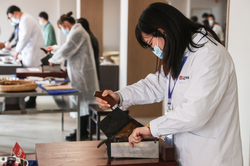 在中药传统制药十项技能展示环节,来自全市行业工匠、劳模、中药传承专家、老药工等一起示范展示精选炮制与调剂各环节常用的十项技能,让人眼界大开。