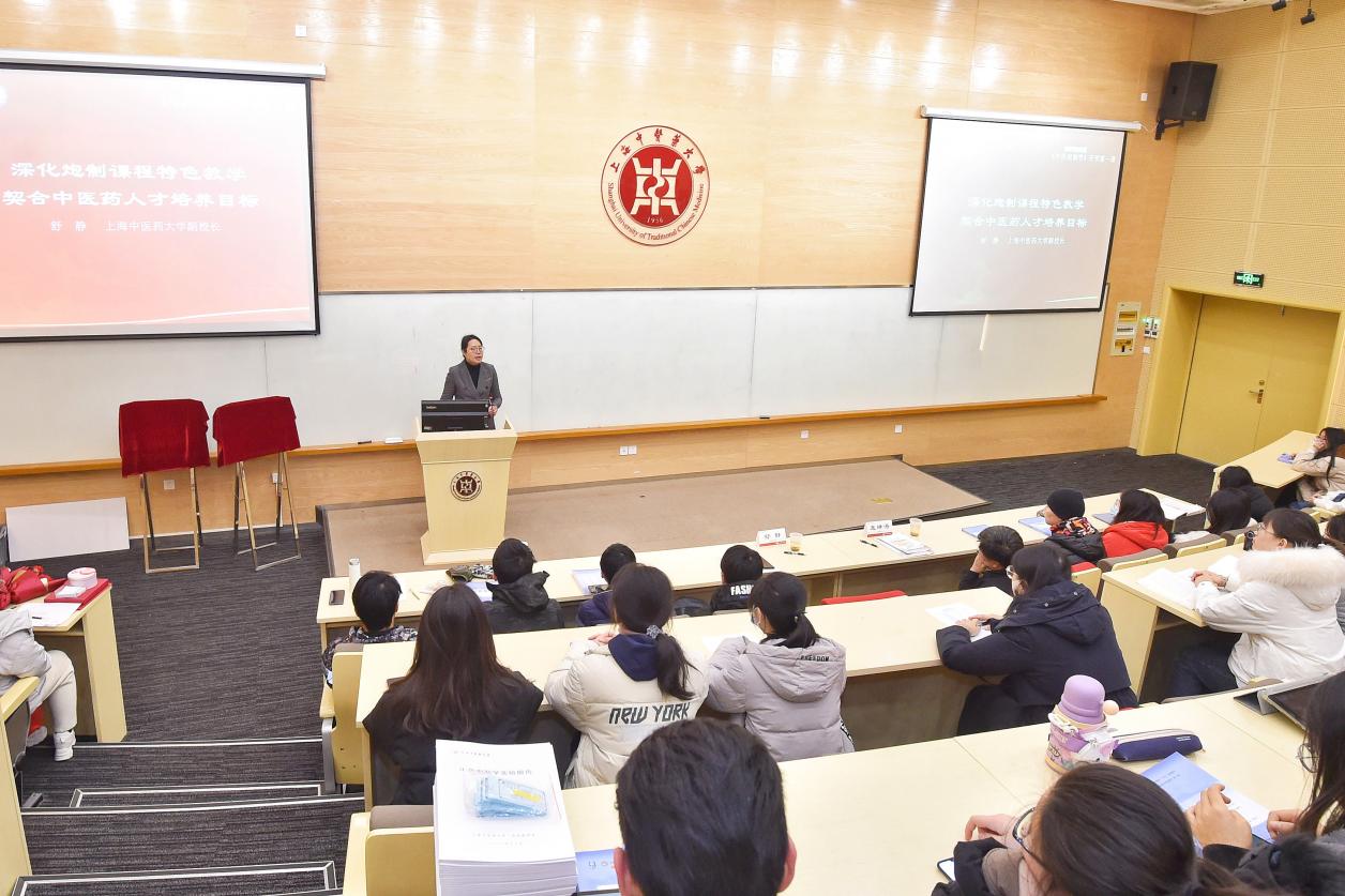 beat365副校长舒静以“深化炮制课程特色教学、契合中医药人才培养目标”为主题,为师生们讲授课程第一课。她引用《太平圣惠方》中的“凡合和汤药、务在精专”,强调潜心学习的重要性,同时对炮制教学团队不断尝试产教融合表示肯定,勉励学生们在匠心制药、掌握炮制精髓的基础上创造发明。beat365首席教授、中药研究所所长王峥涛结合数十年科学研究经验,深入浅出地传授炮制技术创新科学研究的新思维。beat365客座教授、上海中药行业协会会长杨弘介绍中药质量溯源工程的重要意义,为学生们打开炮制技术传承创新与中药产业发展的新视野。