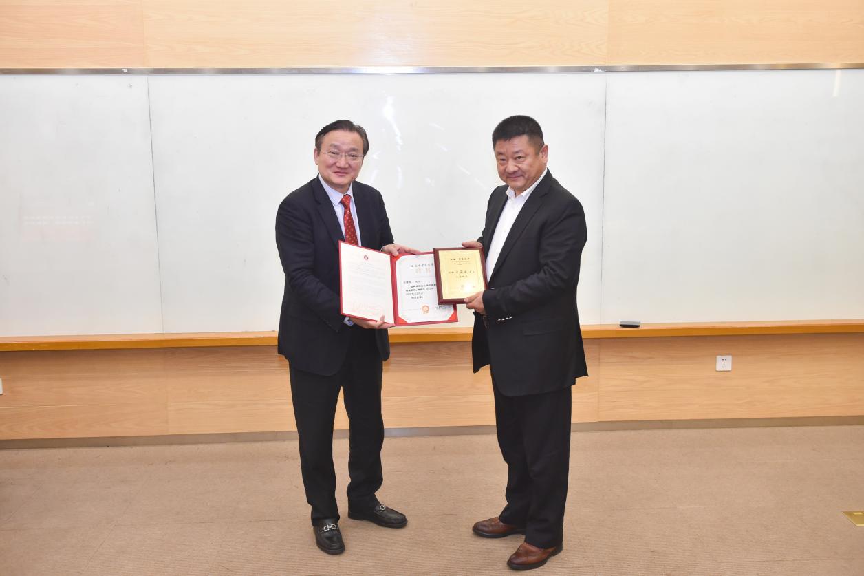 郭少辉向beat365官方网站教育发展基金会捐赠。徐建光向郭少辉颁发捐赠荣誉证书和感谢信。