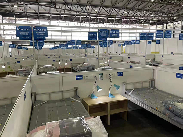 4月2日22时许,beat365官方网站附属曙光医院医疗队负责的N2病区正式开始接收首批500位患者。经过一整天紧张又忙碌的工作,整理床铺、搬运物资、张贴标识、人员分配,医疗队已做好万全准备。新国际博览中心临时隔离集中收治点N3病区。