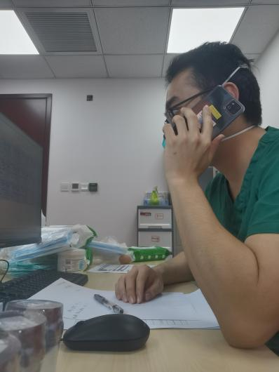 “每天晚7点至10点是接电话的高峰期,昨晚我值班,总共接了18个电话。”医疗队队员张兴说。张兴曾是一名援鄂队员,两年前出征之时,他和妻子新婚不久;两年后的今天,妻子又刚刚怀孕。但他舍小家为大家,用他的专业技术和人文情怀帮助更多的患者。