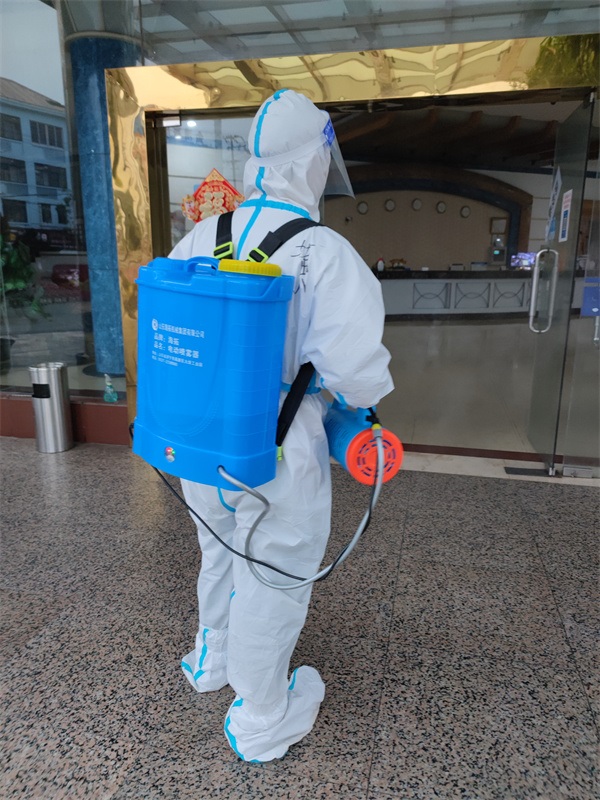在前期沟通中,黄景斌老师了解到酒店硬件条件有限,团队成员大多没有医学背景。于是,黄老师结合自己的专业特长对隔离点进行风险排查,因地制宜地制备了一些防护措施,同时承担起核酸检测协助、转运发放物资等日常工作。同时,考虑到酒店门卫来自外聘保安公司,并非专业消杀人员,黄老师也承担了一部分常规消杀工作。