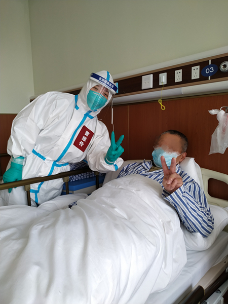 曹维伶是这么说的,也是这么做的。3月30日,按上级部署,病区开始收治合并内科疾病的重症患者。曹维伶给自己排最辛苦的班,负责护理最重的患者。遇到病人情况危重,医疗团队立即制定个性化中西医结合救治方案,而曹维伶则带领护理团队积极配合医生对患者进行精心的护理,一次次,他们将患者从死亡线拉了回来。她们还和医生一起开展多学科会诊,制定最适合病人的治疗及护理方案。