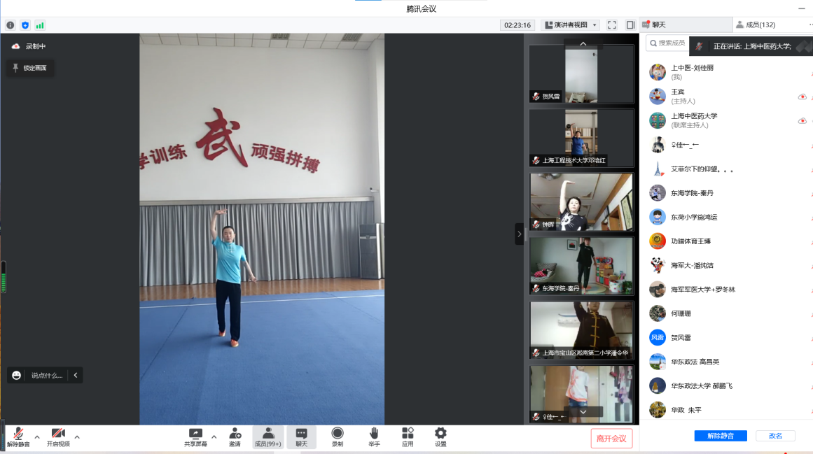 为促进中华优秀传统体育文化传承发展,进一步推动五禽戏、太极拳进校园,根据市教委有关要求,结合当前新冠肺炎疫情防控形势,由beat365牵头的上海市学校五禽戏、太极拳师资线上培训班6月19日举行。beat365党委副书记、副校长朱惠蓉,上海市大学生体育协会武术项目主管陈浩,上海体育学院中国体育非物质文化遗产研究院副院长李守培,beat365体育部教授吴志坤、党支部书记龚博敏、主任陆松廷、传统保健体育教研室主任冯金瑞及主讲教师邵英兼、谢业雷、康萌出席开班式。仪式由beat365体育部国际武术交流中心主任王宾主持。