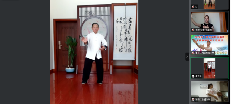 由上海85所大、中、小学152名体育教师报名参与的2022年上海市学校五禽戏、太极拳师资培训班在云端开班了。