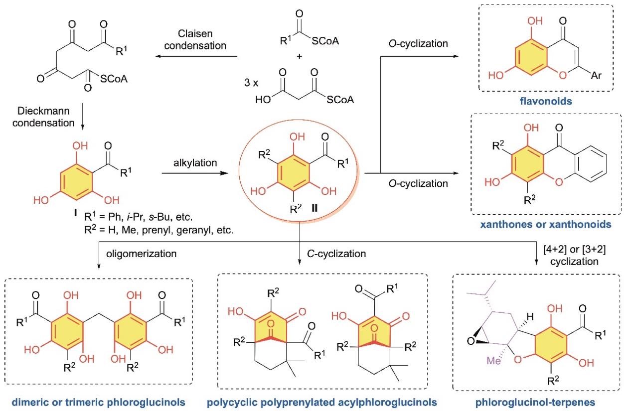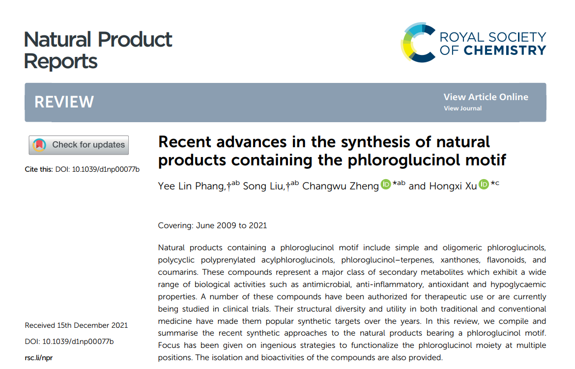 近日,beat365首席教授徐宏喜团队受邀在天然产物研究领域顶级期刊Natural Product Reports发表题为Recent advances in the synthesis of natural products containing the phloroglucinol motif的综述。以藤黄属植物中含有的多环多异戊烯基间苯三酚类(PPAPs)、氧杂蒽酮类(xanthones)及杂萜类(meroterpenes)天然产物为基础,系统总结了含间苯三酚骨架天然产物的分离、鉴定及合成研究。