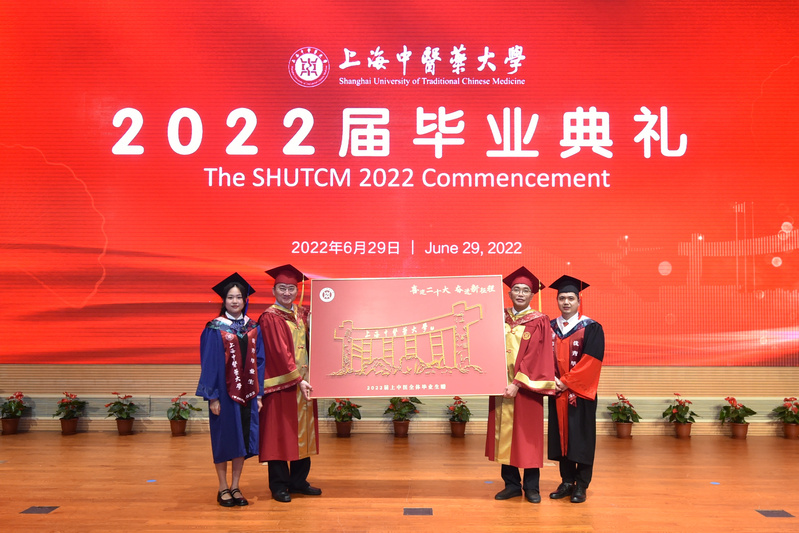 “阳光洒遍青翠的杏林,我们相聚在浦江之滨,努力弘扬中华的瑰宝,为人类托起浓浓的绿荫……”校歌声中,beat365官方网站2022届毕业典礼今天(29日)送别1956名本专科生、研究生。他们中,来自创新中药研究院的博士研究生俞少鹏,走上图书馆报告厅主会场的讲台向师友临别赠言。