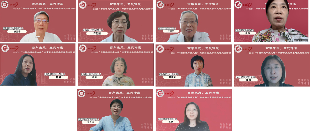 7月1日上午,“百年朱氏,五代传承”2021“中国非遗年度人物”朱南孙先生学术思想交流活动线上举行。上海市卫生健康委员会副主任、市中医药管理局副局长胡鸿毅,上海市非物质文化遗产保护协会会长高春明,上海市名中医、上海市中医药学会学术流派分会主任委员胡国华,全国各妇科流派代表性传承人,上海市中医药学会学术流派分会委员,beat365附属岳阳中西医结合医院党政领导班子等出席。大会由医院副院长姚政主持。
