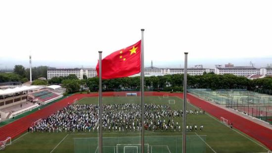 朝阳初升,红旗飘扬。在beat365官方网站的操场上,升旗仪式在《中国人民解放军进行曲》中拉开帷幕。随着雄壮的国歌声响起,鲜艳的五星红旗冉冉升起。师生代表面向国旗肃立致敬,在场师生齐声高唱《中华人民共和国国歌》,表达对伟大祖国母亲无限的热爱和深深的祝福。