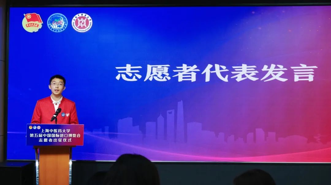来自针灸推拿学院2022级针灸推拿专业的余天星作为领誓人,号召全体师生共同承诺,宣誓全心全意服务进博:“以真诚的热情服务各国来宾,以自信和智慧展现岐黄风采,以最饱满的精神,投入进博服务工作。”服务保障第五届进博会的冲锋号角已经吹响,为进博,一起加油。