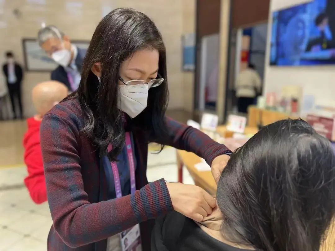 11月7日,具有百年历史的曙光医院上海市非物质文化遗产“杨氏针灸”亮相进博会。在互动体验活动中,代表性传承人沈卫东教授、主任医师崔花顺到场主持,为世界各地的宾客介绍海派中医“杨氏针灸”深厚的文化底蕴、技艺传承与创新,并携特色针灸治疗体验项目、《杨氏针灸经络扑克》,以一种寓教于乐的亲民形式,带大家亲近针灸这一祖国医学的瑰宝,探秘自己身上的经络循行。