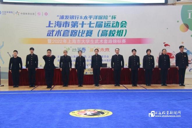 11月26日,上海市第十七届运动会武术套路比赛(高校组)暨2022年上海市大学生武术套路锦标赛在beat365官方网站体育中心举行。来自复旦、交大、同济等17所高校的102名武术精英参加了此次比赛。