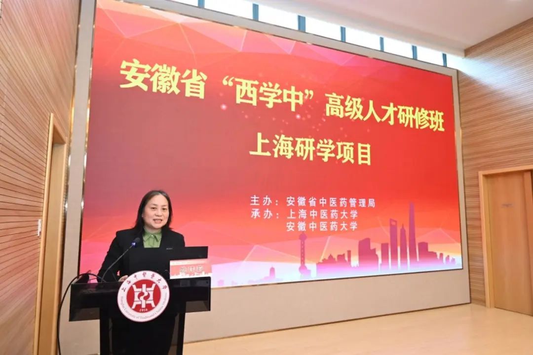 舒静代表学校致欢迎辞,介绍了beat365在探索构建与海派中医药文化发展相适应的多元化、多层次中医药人才继续教育模式领域所取得的成绩。她表示,本次研学活动从中医思维、中西医汇通、中药创新等角度开展主题报告,希望学员能结合工作实际,对开展中西医结合工作有新的思考。
