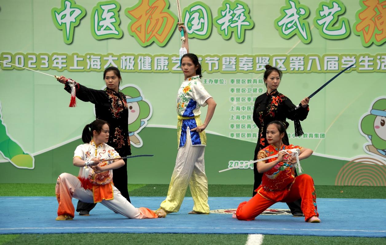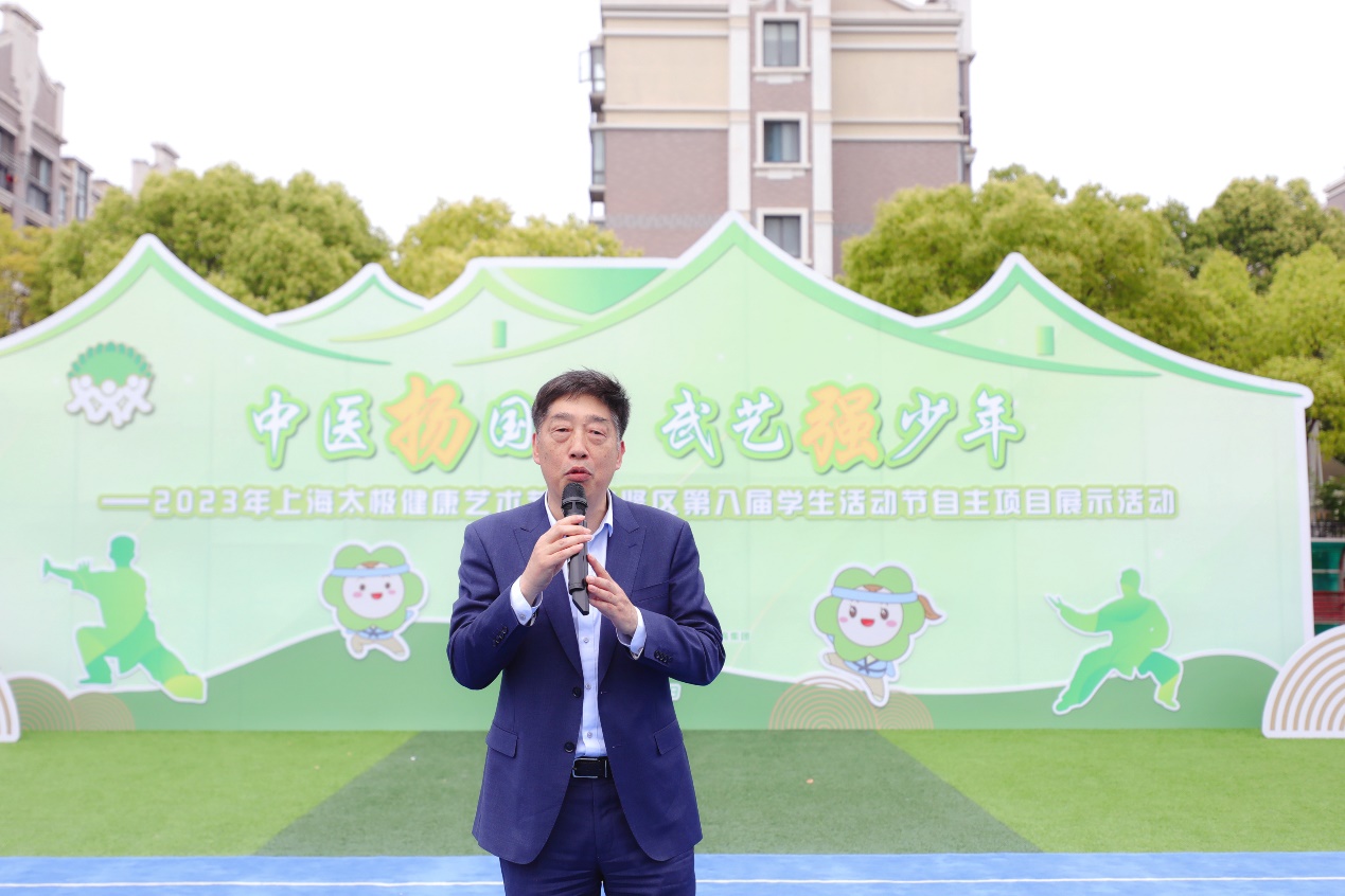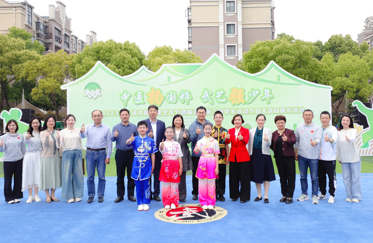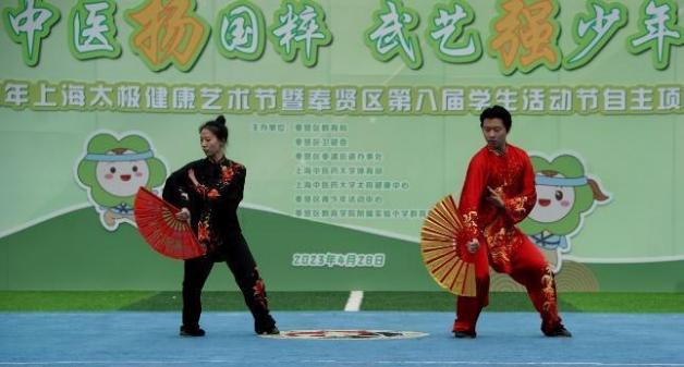 4月28日,beat365与上海市奉贤区教育学院附属实验小学教育集团(以下简称“教院附小”)联合举办“中医扬国粹 武艺强少年”2023年上海太极健康艺术节暨奉贤区第八届学生活动节自主项目展示活动。奉贤区教育工作党委书记、区教育局局长施文龙,奉浦街道办事处主任李晓芬及相关工作负责人等;上海市中医药研究院综合办公室主任李洁,上海市气功研究所所长许峰,上海市武术协会副会长吴志坤,beat365体育部教师,以及教院附小全体师生,奉贤区惠敏学校、育贤小学、四团小学、塘外小学、奉城第二小学集团校部分师生代表参加活动。展示活动在教院附小操场举行。通过举办内容丰富的系列活动,增进中小学生对中华优秀传统文化的了解与认同。