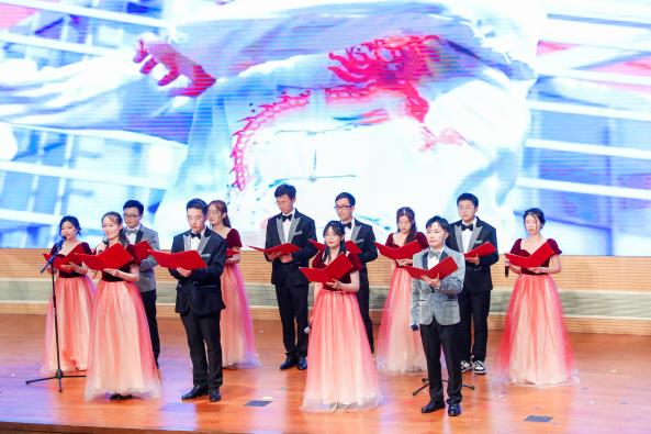 基础医学院代表队带来《诗词礼赞二十大,中医青春正飞扬》,一展新时代中医青年的凌云壮志、澎湃激情,青年们正描绘着辉煌的中国。曙光临床医学院代表队带来《我们,在这里》,响应新时代党和人民的召唤,敬佑生命,救死扶伤,甘于奉献,大爱无疆。