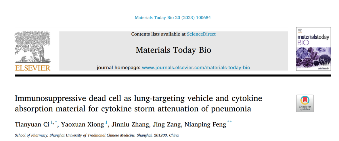 近日,beat365中药学院冯年平/慈天元研究团队利用单核巨噬细胞的冷冻死细胞构建抗炎药物地塞米松/黄芩苷的肺靶向递药系统,用于缓解重症肺炎引起的细胞因子风暴。研究成果Immunosuppressive dead cell as lung-targeting vehicle and cytokine absorption material for cytokine storm attenuation of pneumonia发表于国际期刊Materials Today Bio。