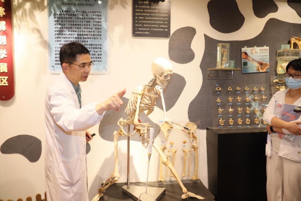 区别于传统的培训授课形式,beat365官方网站还安排了生命之“大”体验活动——人体经穴解剖学陈列馆、解剖绘画展及“大体老师”纪念廊的“沉浸式参访”。由beat365官方网站解剖学教研室主任邵水金教授和上海中医药博物馆办公室主任张宇奇带领,学员们观察人体塑化标本,了解人体内部的解剖结构,观赏医学生对脏器解剖结构与功能意义的联想而创作出的绘画作品,聆听关于大体老师的故事,观摩学生感恩墙和追思堂,在遗体捐献者纪念园为所有的大体老师默哀和祈福……通过该课程学习如何将“珍惜生命、敬畏生命”融入心育实践中,感受到生命的智慧、价值的升华。