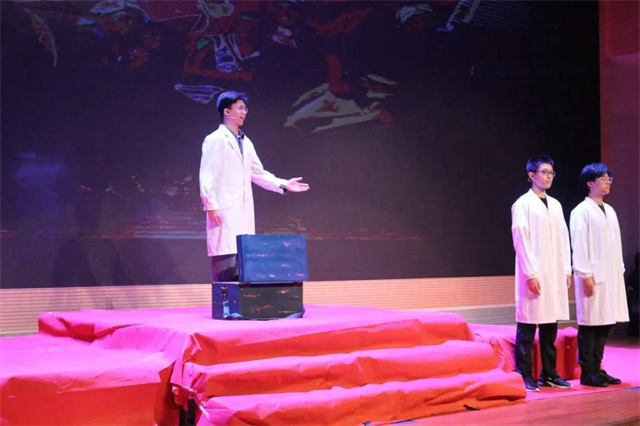 “中央红色医院,这是红军第一个正规医院,医院的设备、药物大部分来自傅连暲的私人财产……”背着道具药箱的beat365官方网站师生,正在舞台上声情并茂地讲述“中国共产党第一个红色医生”傅连暲的革命故事。