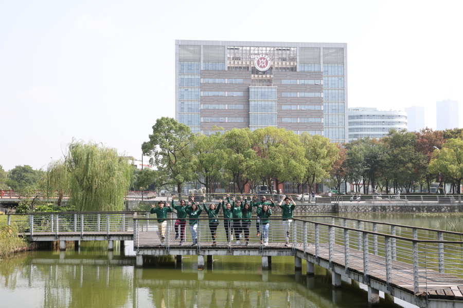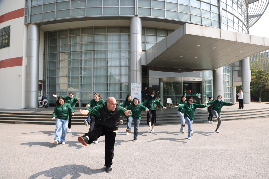 原来,他们属于“木火土金水”最后一组——“水组”。解放日报·上观新闻记者15日来到beat365官方网站国际交流合作中心楼前,正逢一组来华留学生拍集体照。按中国传统“五行”学说,他们都被分在一组,于是取出“水”来充当道具。5个组别对应的包袋颜色依次是“青赤黄白黑”,对应的模拟动作则依次是五禽戏的“虎、鹿、熊、猿、鸟”。