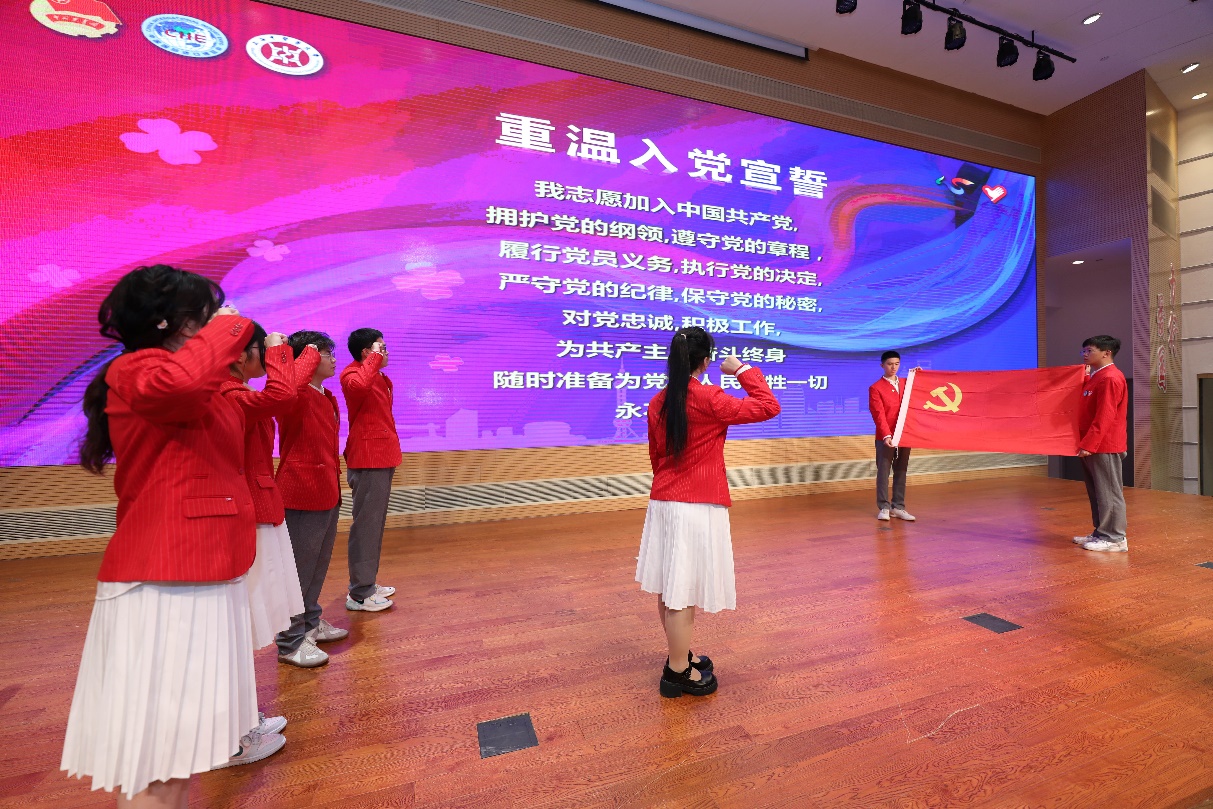 党员志愿者代表和团员志愿者代表面对党旗和团旗再次重温入党、入团誓词,表达了志愿者们跟党走、听党话的决心。全体志愿者共同承诺:“以真诚的热情服务各国来宾,以自信和智慧展现岐黄风采,以最饱满的精神,投入进博服务工作。”