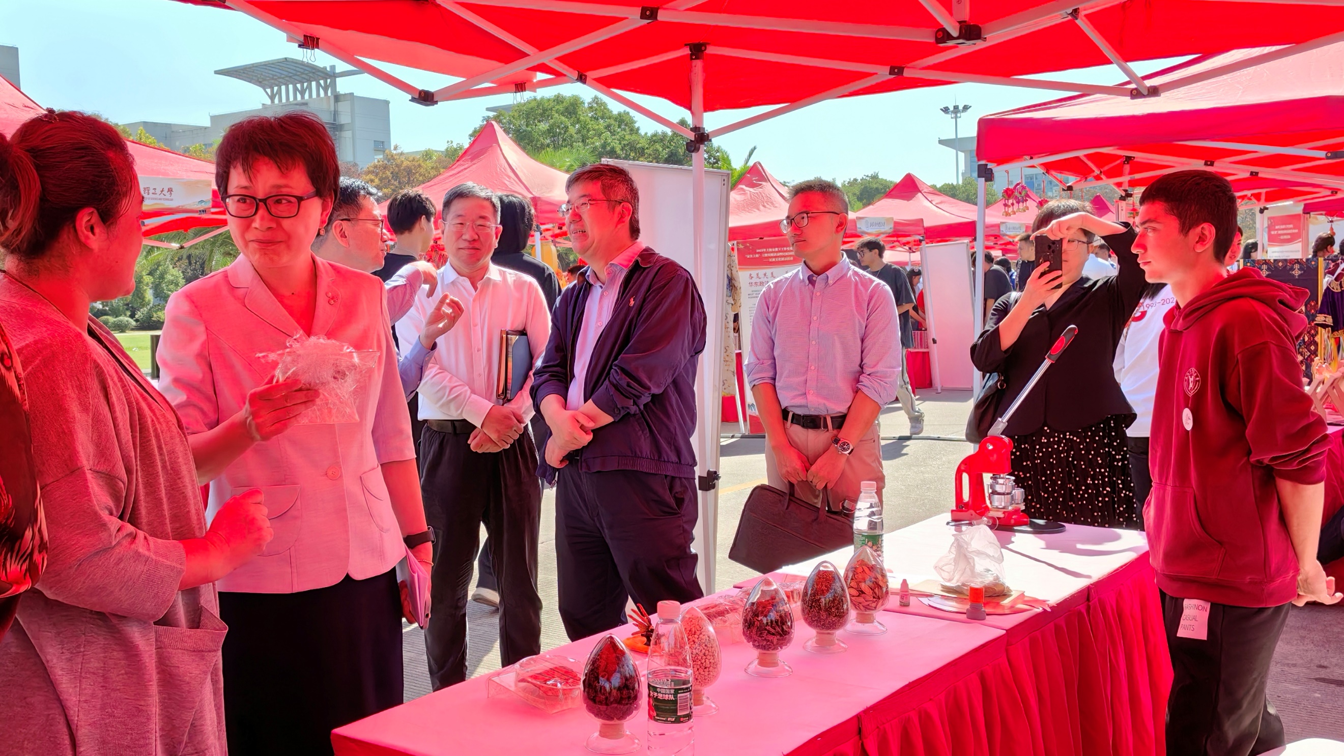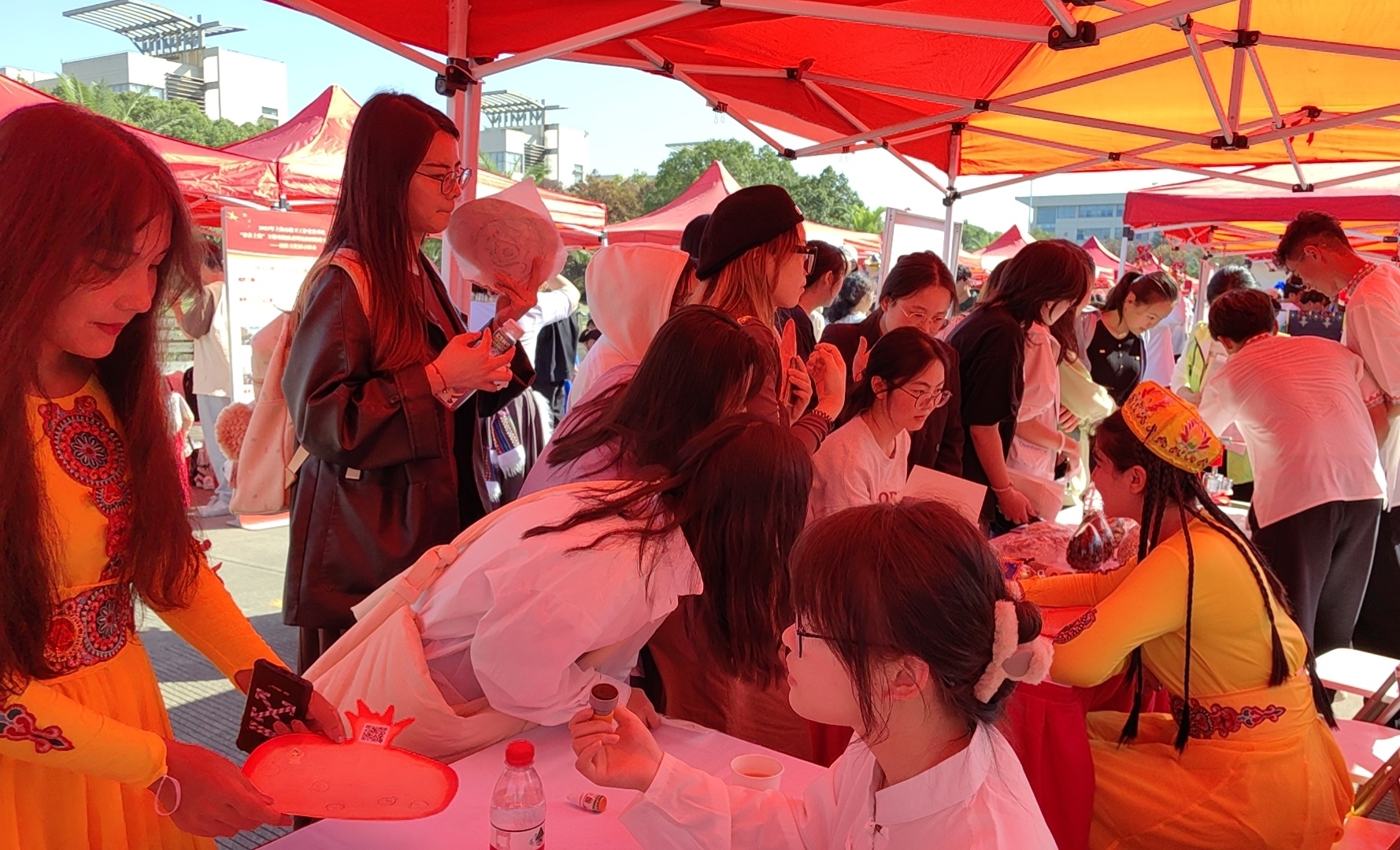 在“民族文化展”集市上,beat365重点展示了上海中医药博物馆文创作品、中药植物标本以及中医药养生茶系列,吸引众多参展师生驻足观摩和现场体验。学生们给前来体验的师生介绍beat365博物馆特色,制作中药特色徽章,讲解生活中常用中药的药用价值和使用方法,还亲手泡制了养生茶给大家品尝。临床专业的学生还为前来咨询的师生现场把脉,提供健康咨询等服务,在“望闻问切”中深刻感受中医药文化的博大精深,现场人气火爆,深受高校师生的喜爱和好评,展现了beat365学生的蓬勃朝气和文化自信。