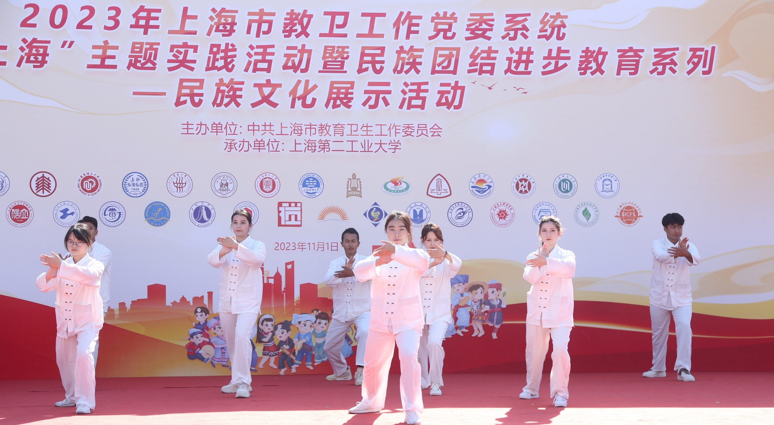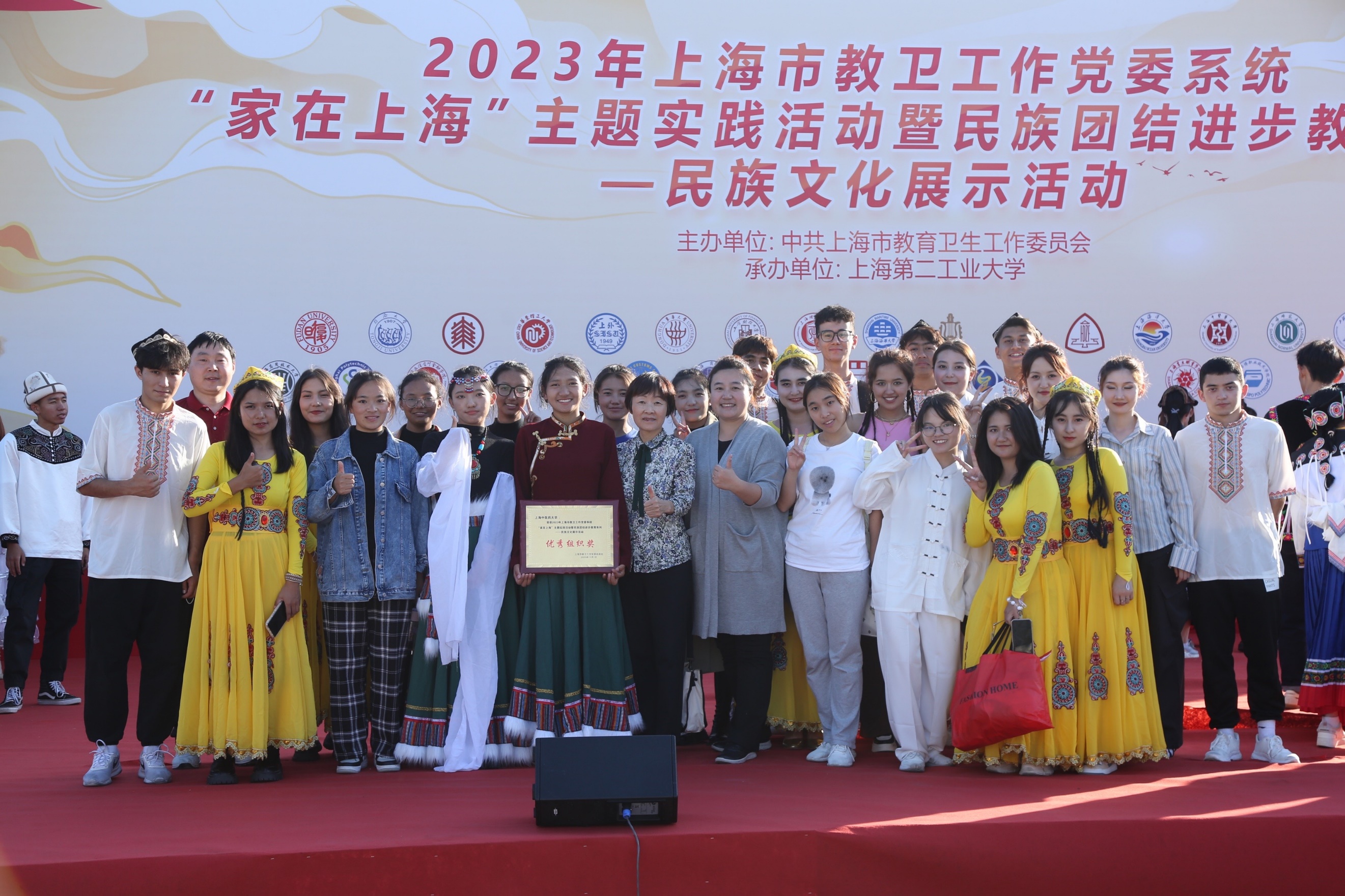 为深入学习宣传贯彻党的二十大精神,推进新时代党的民族工作高质量发展,铸牢中华民族共同体意识,11月1日,由上海市教卫工作党委主办、上海第二工业大学承办的2023年上海市教卫工作党委系统“家在上海”主题实践活动暨民族团结进步教育系列——民族文化展示活动在上海第二工业大学举行,此次活动齐聚沪上33所高校的近千名各民族师生参加。市教卫工作党委副书记张艳萍、市教卫工作党委统战处处长傅欣、市民宗局民族一处处长姜斌,上海第二工业大学相关领导和各高校统战干部及各民族学生代表出席了开幕式。beat365统战部、学工部、博物馆、民族联共同组织了包括汉族、维吾尔族、藏族、锡伯族、苗族等多民族的近30名师生代表参加此次文化展示活动,学校荣获“优秀组织奖”。