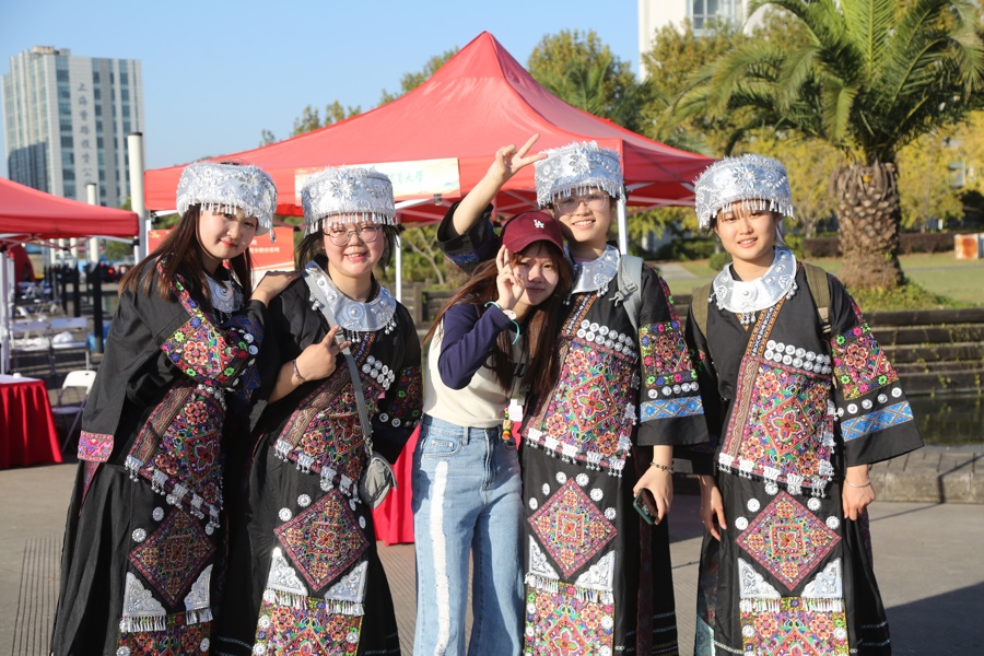 从体育、劳育到美育,1日是上海高校的“民族文化节”,复旦大学、同济大学、华东师范大学等33所高校的各民族近千名师生盛装出席,让东道主二工大的校区主干道变成“多彩的海洋”。这项民族文化展示活动,是上海市教卫工作党委系统“家在上海”主题实践活动暨民族团结进步教育系列活动的重要节目。