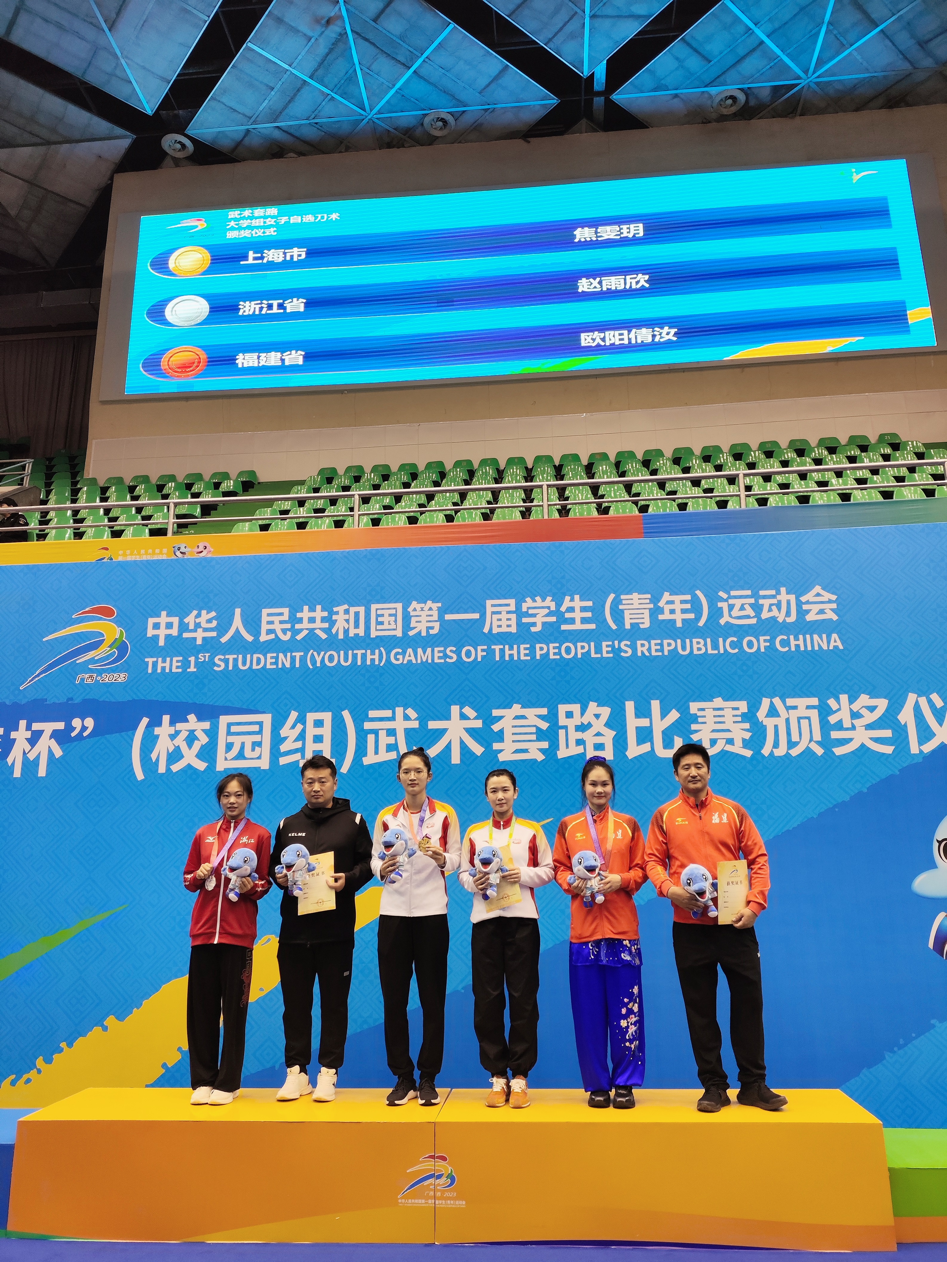 11月5日至15日,由教育部、体育总局、共青团中央主办的第一届全国学生(青年)运动会(简称学青会)在广西举行,旨在全面深化和推进新时代青少年和学校体育高质量发展,增强学生体质健康水平,促进竞技体育后备人才培养。本届学青会共设39个大项、805个小项,1.8万名运动员参赛。由beat365组建的校园组上海代表团武术队(大学组)在此次比赛中喜获1金2银1铜的佳绩。其中,beat365运动员焦雯玥斩获女子大学组自选刀术冠军,为上海代表团和beat365增添了荣誉。
