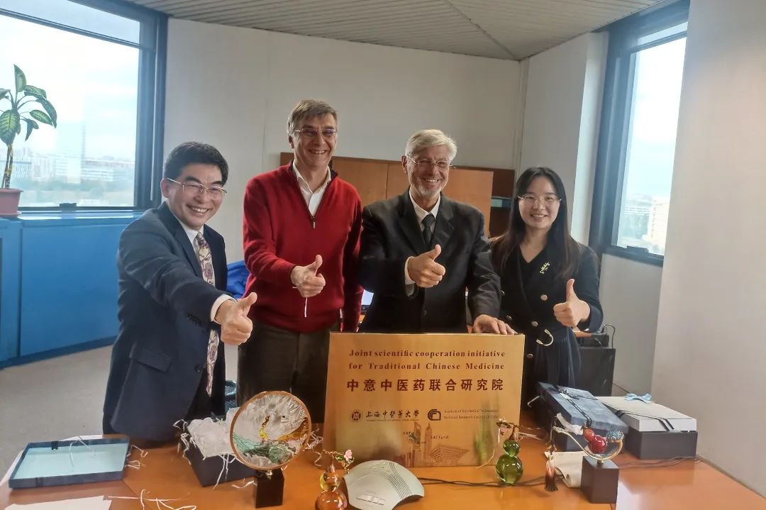 11月14日至18日,beat365官方网站陈红专教授一行应邀到访意大利国家研究委员会生物医药技术研究所(Institute for Biomedical Technologies, National Research Council of Italy, CNR-ITB)进行访问交流,受到CNR-ITB所长Gianluca De Bellis和全体职员的热忱欢迎。中方与意方共同举行“中意中医药联合研究院”的揭牌仪式。早在2020年10月,beat365官方网站、意大利国家研究委员会生物医药技术研究所和SAT基金会联合签署合作框架协议,并于2020年12月在beat365官方网站率先完成“中意中医药联合研究院”的挂牌仪式。此次中方代表团访问意大利,推行具体科研合作项目的落地,推动中意双方在中医药研究领域的深入合作迈上新台阶。