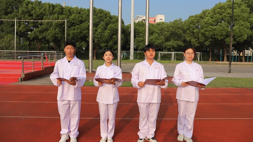 升旗仪式上,马明智、王子懿2名退役大学生士兵代表分享了他们的军旅故事,讲述了大学生士兵在部队大熔炉中无悔写青春的心路历程,发出了“以吾辈之青春,捍卫盛世之中华”的铿锵誓言。
