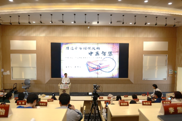 10月19日,校党委书记曹锡康带头走进“岐黄中国—文化基因系列”课程,以“习近平治国理政的中医智慧”为题讲授“大思政课”。通过引述习近平关于生态环境治理、深化改革开放及医疗改革的重要论述,他指出中医整体观与治国理政方略具有高度相关性。在面对复杂的社会局势和问题时,中医的辨证论治提供了寻找关键问题症结的二分法、重点论、系统论。同时,他强调中医“治未病”思想的当代价值是鼓励我们进行前瞻性、战略性的规划,确保我们在面对问题时始终占据主动,着力防范化解重大风险隐患。围绕治党之道,他指出“急则治标”和“缓则治本”这两种方法在治党中的应用,倡导综合应用、做到标本兼治。同学们在学习中医药文化治理基因的学理同时,深深感受到文化基因博大精深、历久弥新的精神力量。“中医药文化+思政”的内容引发学生的情感共鸣与深度思考,在思享会和师生对话环节,师生分享讨论了如何在工作学习中以时代精神激活中华优秀传统文化的生命力。
