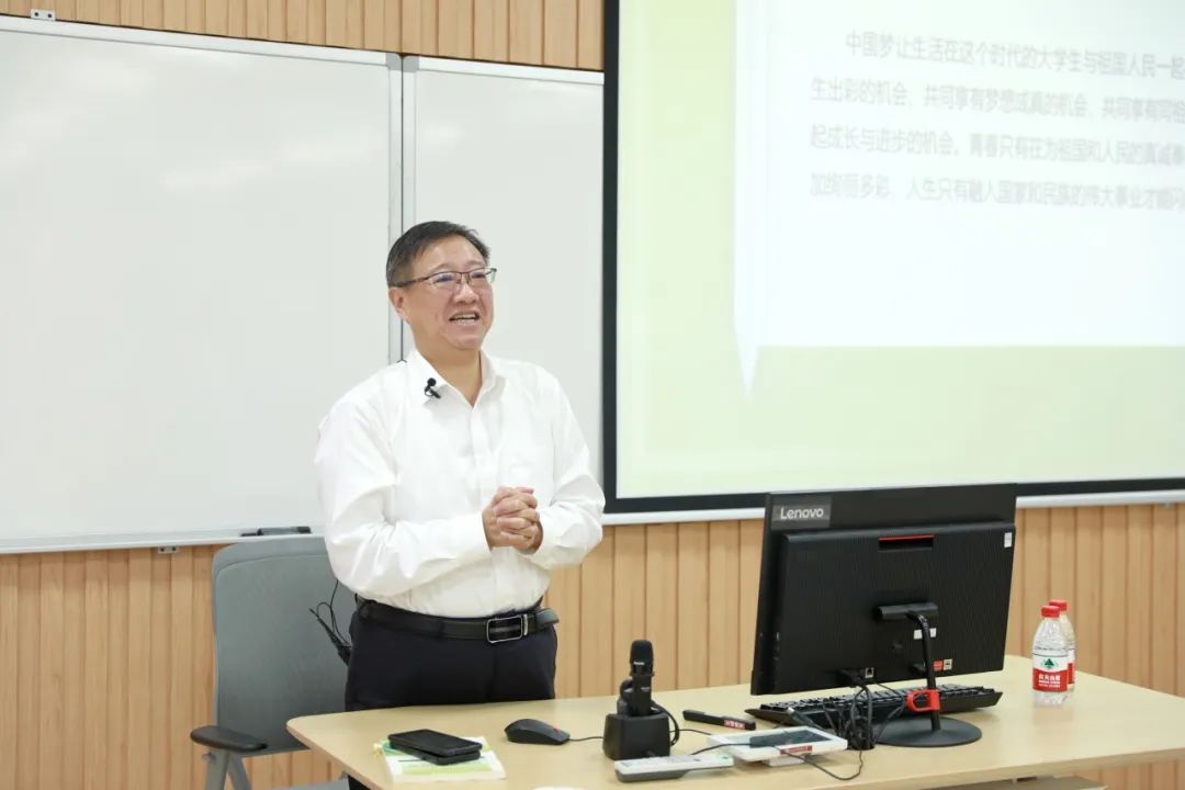 10月13日,校党委副书记、纪委书记周斌走进“思想道德与法治”课,以“追求远大理想 坚定崇高信念”为题讲授“大思政课”。他从《觉醒年代》这部重大革命历史题材电视剧入手,帮助学生正确认识理想信念的内涵与特征及其作用。他还结合自己多次参加上海援疆医疗队的经历,鼓励同学们要坚持个人理想与社会理想的有机结合,砥砺前行,不负韶华。