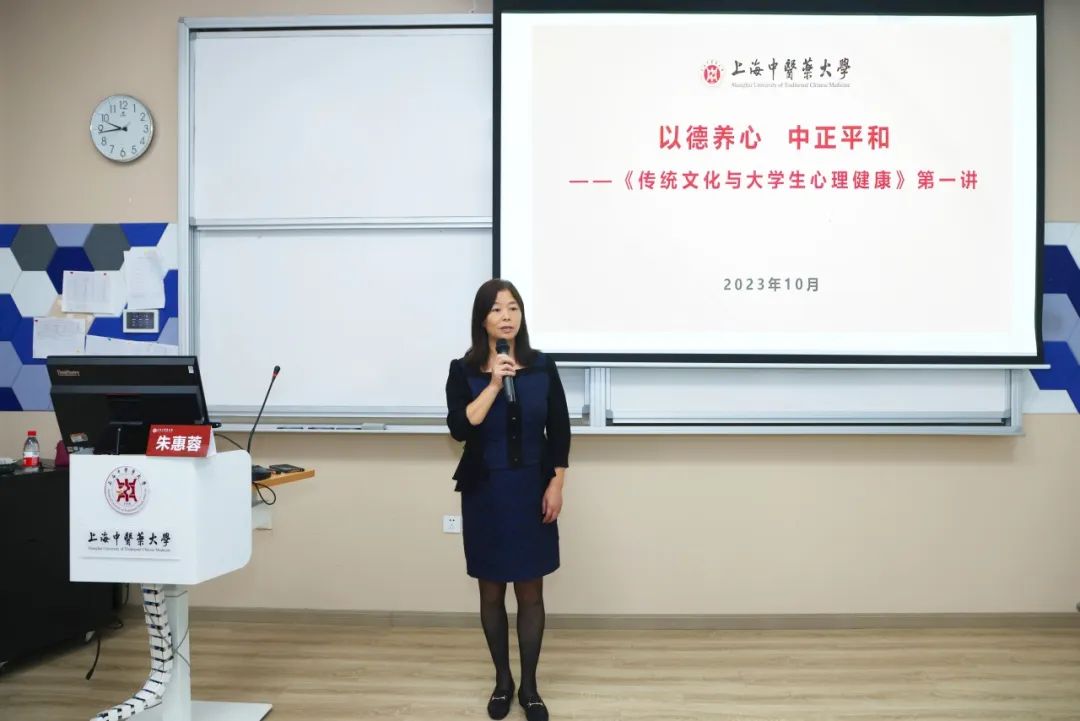 10月31日,校党委副书记、副校长朱惠蓉走进“传统文化与大学生心理健康”课,以“以德养心,中正平和——传统文化与大学生心理健康绪论”为题讲授“大思政课”。她从开设背景、设计思路和课程定位入手,立足国家政策、育人目标及学生现实需求,从“以人为贵”“医乃仁心”“和其不和”三个角度向同学们诠释了“以德养心,中正平和”的育心育德智慧。