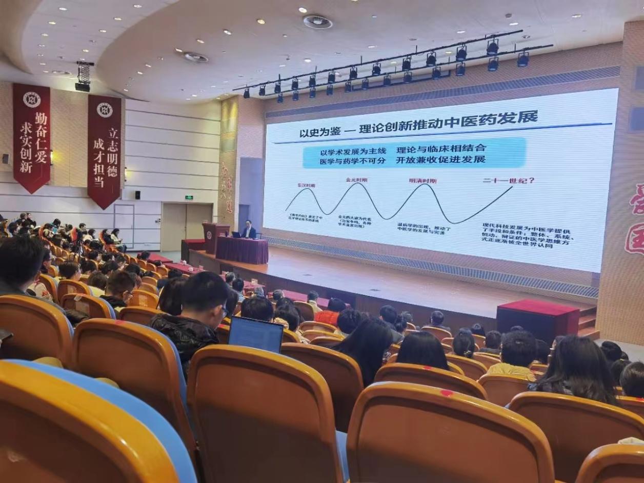 在两个半小时的授课中,吴以岭从学术创新、成果转化、学科进步、产业发展等方面,紧密结合临床实践与基础研究,对络病理论体系构建及其应用研究进行了阐述,介绍了“理论+临床+新药+实验+循证”一体化的中医学术创新与转化新模式。他结合自身经验,分享如何将中医传统理论创新与现代科学技术相结合,产生重大原创成果,推动中医药高质量发展。他还对与会师生员工传承创新发展中医药提出了殷切期望。(科技处、研究生院)