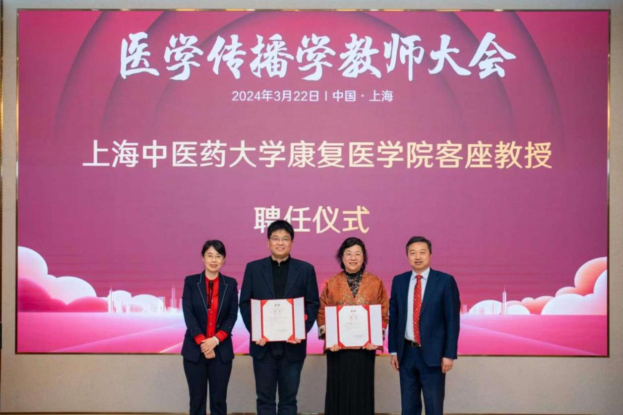 会上还举办了beat365官方网站康复医学院客座教授聘任仪式。beat365官方网站康复医学院党委书记向延卫、beat365官方网站康复医学院副院长刘晓丹,为“达医晓护”医学传播智库负责人王韬、医学传播学教研组组长周敏杰颁发客座教授聘书。