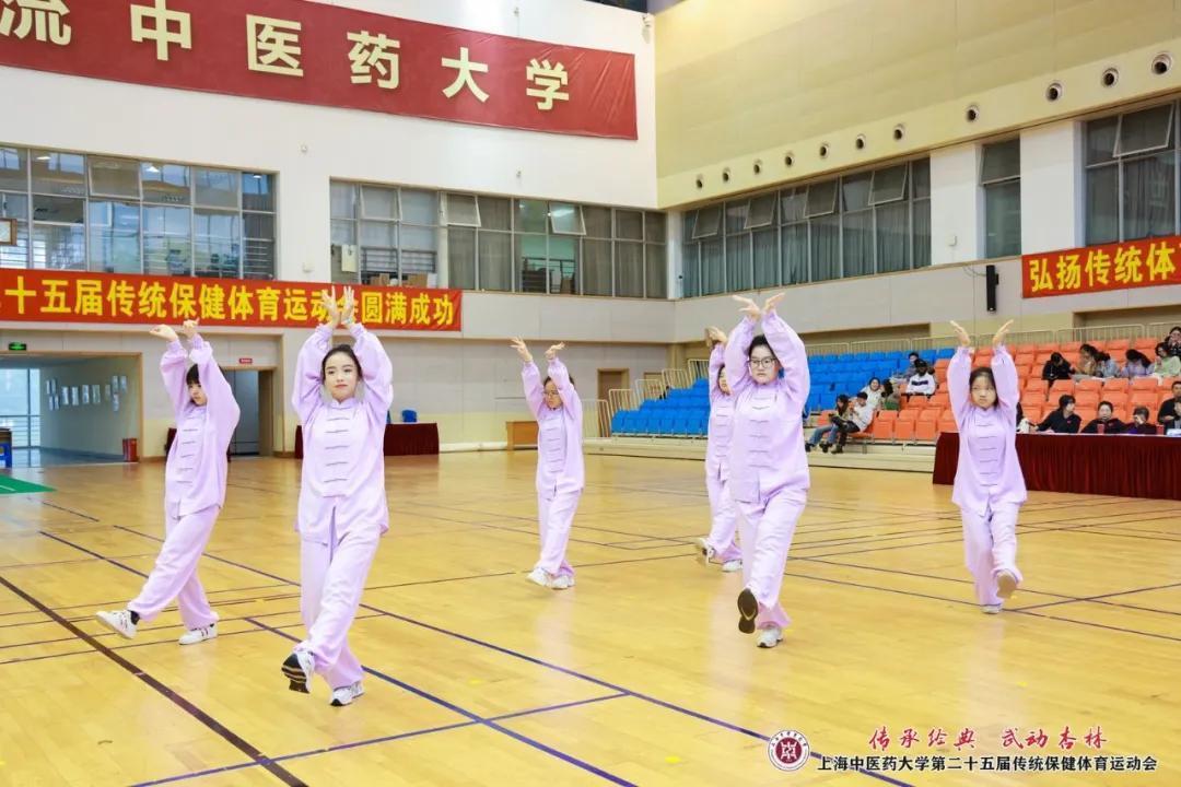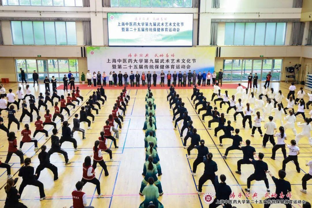开幕式上的舞龙、武术、健美操、散打、短兵等体育教学项目展示,充分展现了杏林学子们青春飞扬、拼搏奋斗的精神面貌。八段锦集体展示与比赛是本轮赛事的首场比赛,也是beat365传统保健体育运动会的特色项目。八段锦是当下青年人热衷打卡的健身运动,此次八段锦展示共有全校26支班级代表队参加,几百人同练,气势非凡。各班级整齐划一、动静相宜、刚柔并济的动作展示,充分彰显出传统体育文化的魅力与上中医学子的自信与情怀。