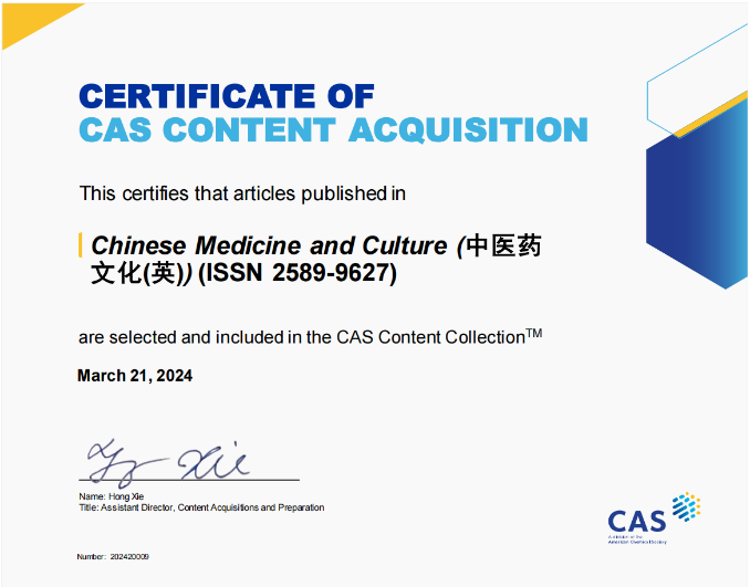 《中医药文化》与《中医药文化(英文版)》(Chinese Medicine and Culture)两本期刊旨在推动全球范围的中医药人文领域研究,鼓励从历史文化的大视野出发,促进中医药多学科交叉融合研究。近年来,稿件水平、编辑质量和学术影响力稳步提升,此次被美国化学文摘社CAS数据库收录是《中医药文化(英文)》(Chinese Medicine and Culture)与《中医药文化》发展过程中一个重要的里程碑。不仅为作者、读者提供了一个更广阔的国际学术交流平台,也使得全球传统医学领域科研人员能更方便地访问和引用其中的研究成果,这一成绩不仅对提升期刊的国际知名度和吸引高质量稿件具有重要意义,也将进一步提升该刊的国际传播力和学术影响力。