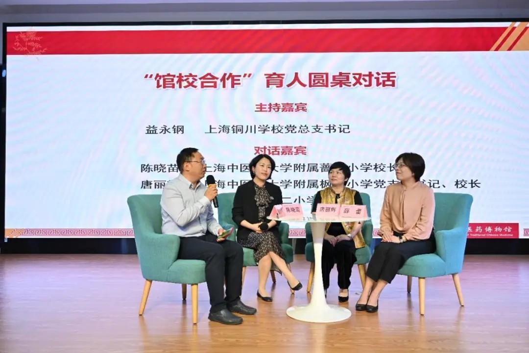 仪式上还举行了“馆校合作”育人圆桌对话,由上海市铜川学校党总支书记益永钢主持。beat365附属闵行蔷薇小学校长陈晓苗介绍如何带动教师主动参与的特色做法以及中医药文化进校园的实践、体会和成果。beat365附属枫泾小学党支部书记、校长唐丽辉侧重于分享在中医药文化进校园过程中提升学生参与度和兴趣度的途径。杨浦区开鲁新村第二小学校长薛蕾就学校近年来开展中医药文化进校园的新举措,提出“培养中医药未来科学家”可借鉴、可推广的好做法。