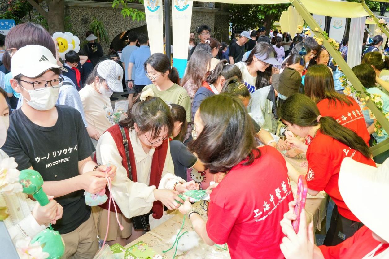 医学主题游园会中,beat365大学生社团巧手坊、街舞社,以及来自针灸推拿学院的志愿者服务团队以中医药文化为载体,开展“杏花烂漫:中药香囊DIY”“百草‘艾’健康:千‘锤’百炼”“‘针’心‘手’护:中医药文化体验”等主题活动,将中医养生融入百姓的日常生活,展位现场人流不断,上至银发老者,下至学前孩童,都来参与互动交流,体验中医药文化的魅力。